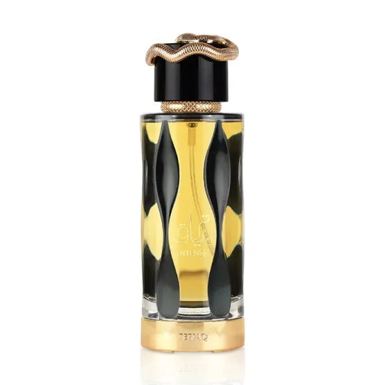 Teriaq Intense by Lattafa Perfumes is a spicy oriental fragrance for women. It is a new fragrance. Teriaq Intense was launched in 2024. Top notes are Saffron and Bergamot; middle notes are Plum Liquor and Cinnamon; base notes are Amber, Tonka Bean and Benzoin.