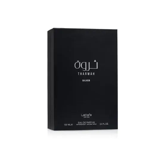 Tharwah Silver, the latest fragrance for men from Lattafa Perfumes. This woody aquatic scent is perfect for the modern, sophisticated man who appreciates a touch of freshness and masculinity. With top notes of mint and bergamot, and middle notes of lavender and clary sage, Tharwah Silver exudes a sense of elegance and allure. The base notes of musk, vetiver, and cedar add a warm, earthy element to this enticing fragrance. Launched in 2022, Tharwah Silver is the perfect addition to any man's grooming routine.
